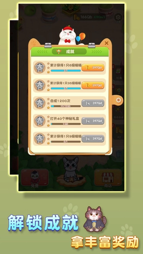 2、迈着小步伐,完成不同的任务,各种各样的活动考验,为你建立更华丽的猫猫小屋。