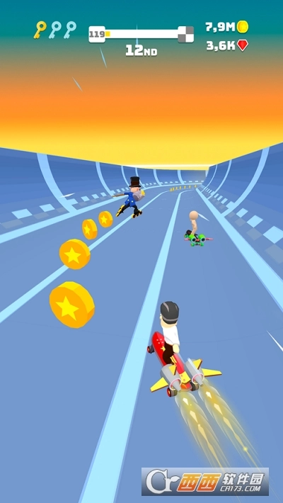 3、驾驶你的独轮战车,尽情的飞驰,超越它们获得比赛的胜利;