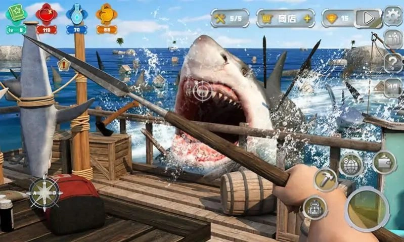 3、多样刺激的游戏玩法,捕食鱼类,保存体力,刺激无双。
