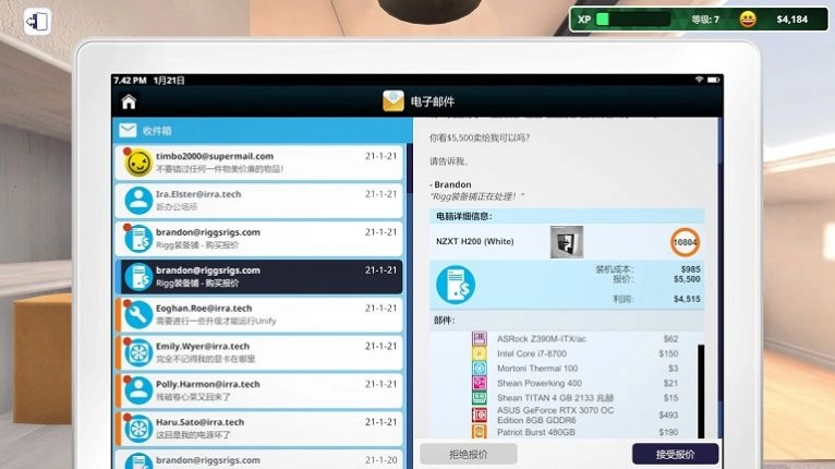 2、游戏内含一个不断扩充的市场,提供各种真实世界的配件,玩家可以前往市场采购配件,装配自己梦想中的终极电脑。