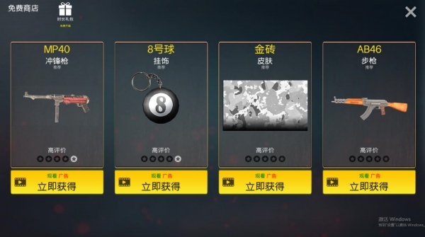 3、免费商店会定期上新高级装备,满足特定条件就能领取性价比高的稀缺物资。
