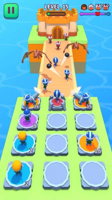 1、合并和繁殖你的士兵,保卫你的塔,前往不要让对手将你击败。