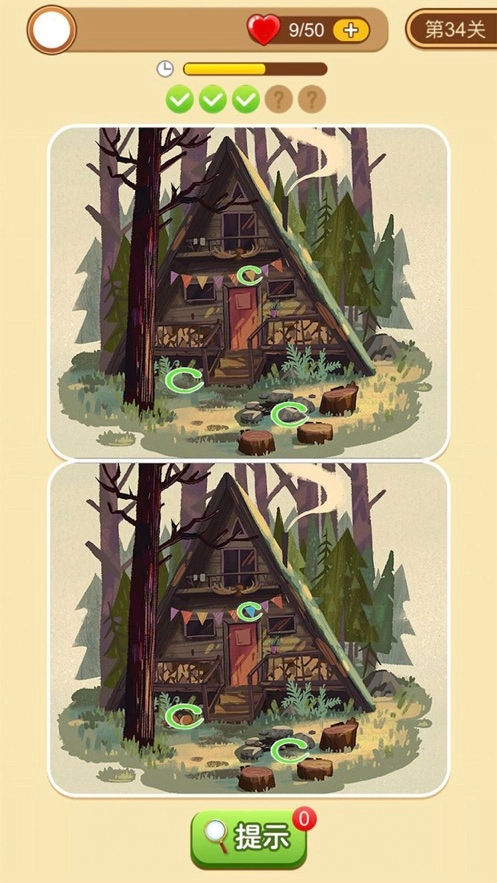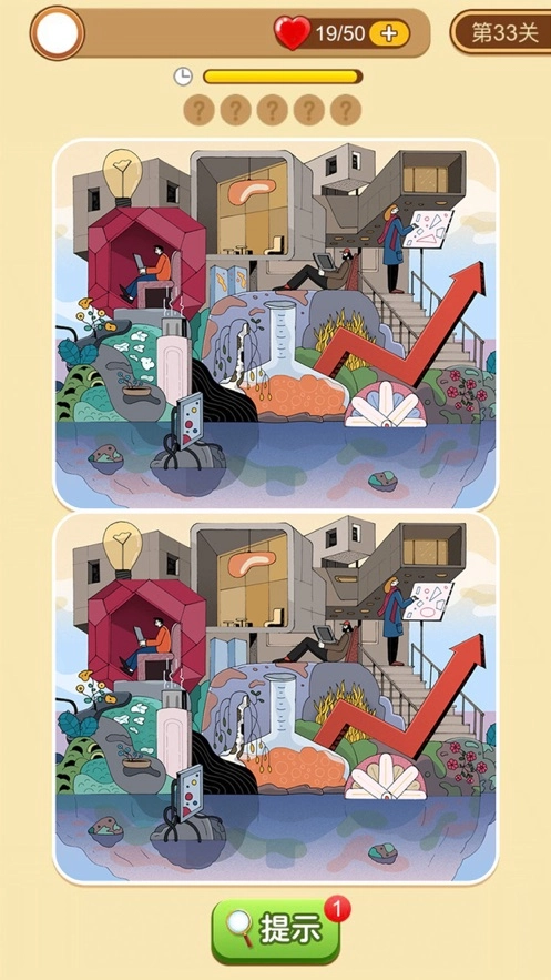 3、依靠你的侦探细胞和鹰眼般的视力找出不同的地方,通过一个个困难的关卡。