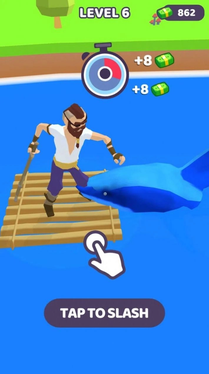 海上有可怕的鲨鱼,你要小心,尤其是在海底冒险时,这些鲨鱼会攻击你的木筏。