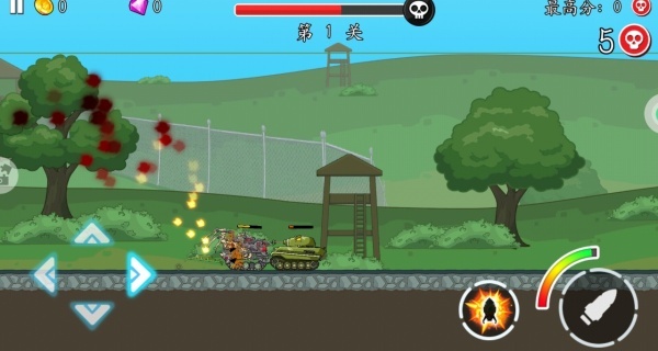 3、借助左侧的方向键来灵活控制坦克的移动,在躲避敌人攻击的间隙,精准把握时机点击右侧的攻击按钮,对敌方单位展开进攻,通过持续不断地输出火力来逐步歼灭敌人。