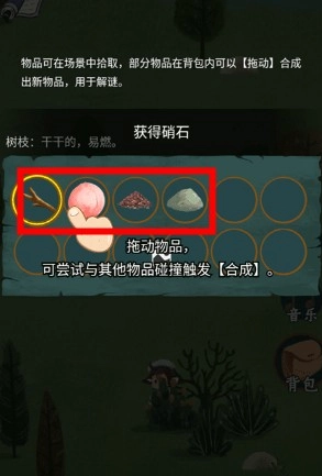 游戏内的部分物品可以在背包中进行拖动合成,合成后的新物品可能是解谜的关键。通过合成道具,你可以场景中的各种谜题,推动剧情向前发展。
