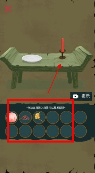 一些特定的物品需要在特定位置使用才能触发剧情。例如,放置桃子在盘子里并点燃蜡烛,就能够成功召唤河伯,从而获得河图。