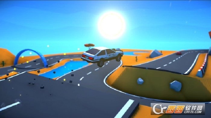 自由的3D驾驶视角无比欢乐的闯关,注意前方的赛道和地形,飞跃穿过断崖。