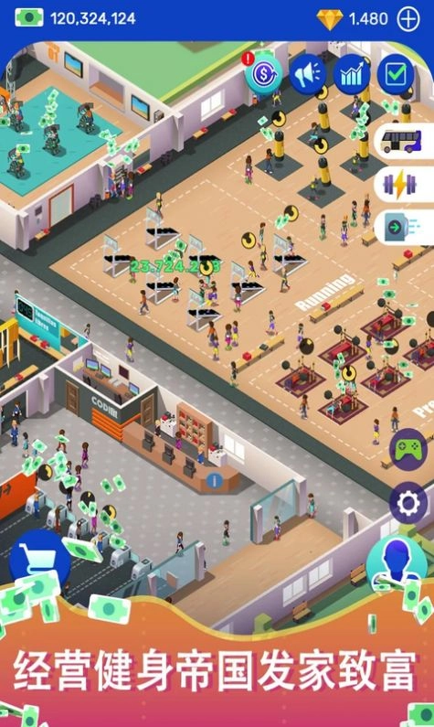 1、卡通世界,经营自己的健身房,享受精彩欢乐的玩法;