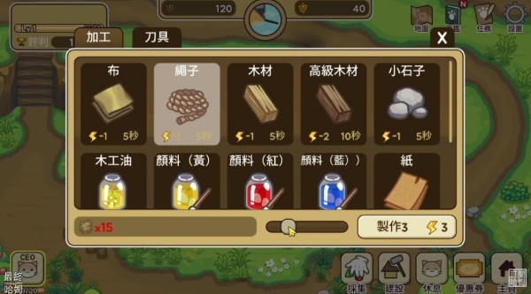 1、在森林、河流与田园之间搜寻木材、石块、水果之类的资源,为营地的搭建与升级工作提前做好储备。