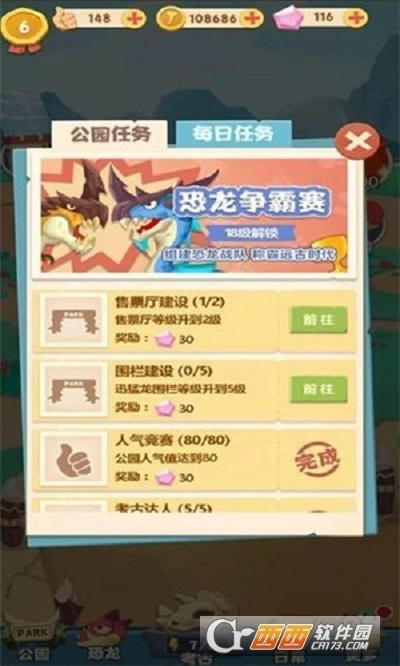 3、丰富的玩法随着时间的推移将会将你的恐龙计划研究扩大发展更加的迅猛。
