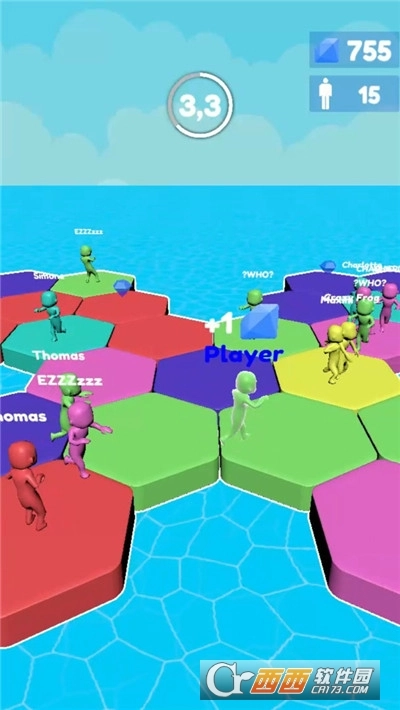 彩色人六边形淘汰赛是款新颖的多人竞技闯关游戏,游戏玩法简单,玩家需要在这个彩色的方块平台上不断跳跃来避免自己掉下去,谁能坚持到最后即可获得胜利。