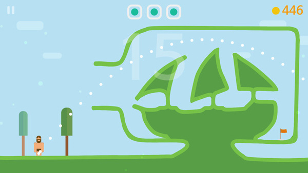 5、这第15关也挺有意思的,是用一个瓶子把船装起来,我们得把它打到最里面,借助最里面那个瓶子的瓶底挡住,让它滑进那个洞里去。