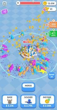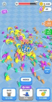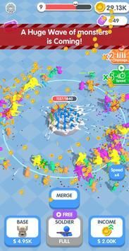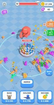 现在,只需动动手指,就能召唤出彩虹小伙伴啦!它们会持枪为你作战!升级你的基地,就能容纳更多士兵。通过合并,你还能得到更强大的彩虹朋友哦!