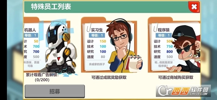 1、放置经营模式的趣味玩法,公司的人才也是不能缺少的,把工作室的知名度提上去来招募员工。