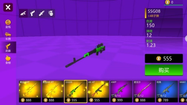 2、前往枪械商店和载具商店,利用初始资金购置基础武器与基础载具,以此提升战斗能力和移动效率。