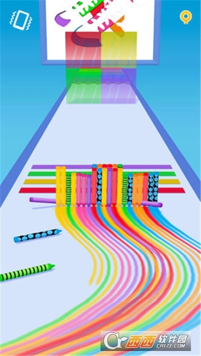2、玩家需要滑动屏幕来控制赛道上的蜡笔,让它们不断移动,在上面留下痕迹。