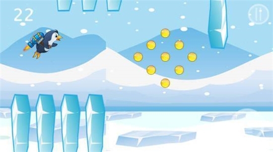飞行小企鹅是一款相当棒的横版飞行闯关休闲游戏,画面采用卡通风格,简约又自然。玩家需要操控背着火箭的小企鹅,穿越冰洞开启冒险之旅。只需点击屏幕就能控制背包喷射,你得留意避免飞得过高或过低,游戏很有挑战性。感兴趣的话就来体验吧!!