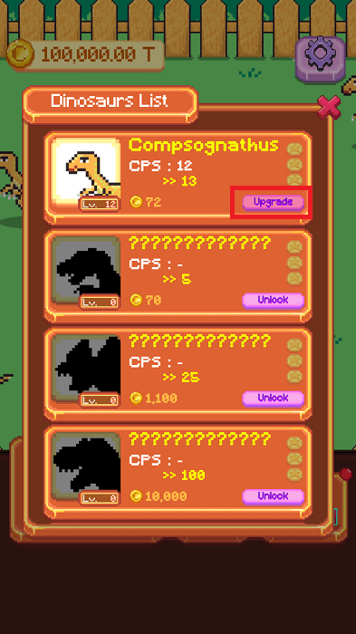 4、你还能升级你的恐龙,这样获得的金币更多了。