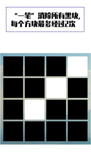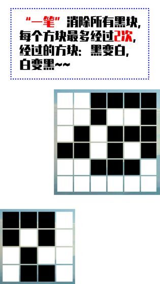 游戏规则:一笔消除所有黑块,每个方块最多经过2次,这个大家要注意了;