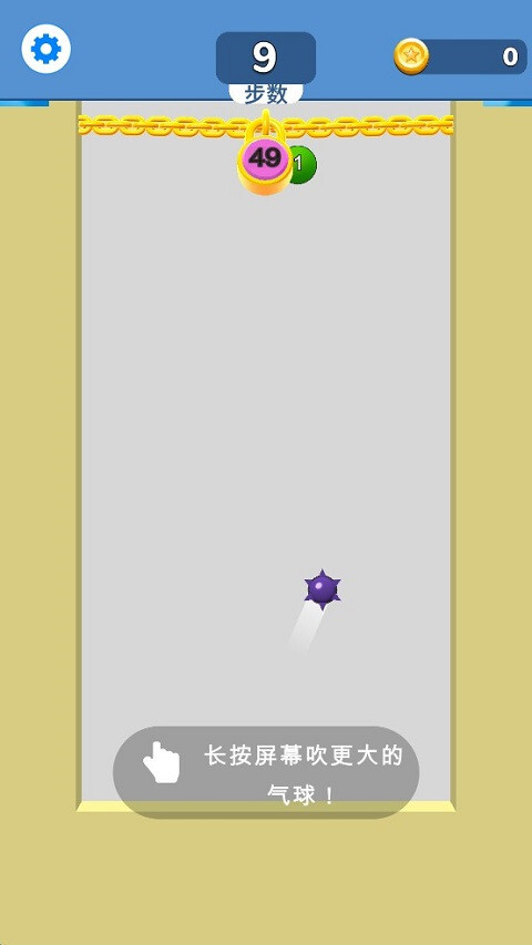 2、游戏开始时,玩家长按屏幕即可吹出气球,气球的大小可由长按的时长与力度来控制。