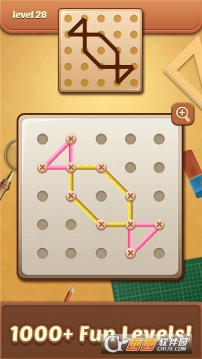 其实能够挑战的关卡还是比较多的,而且难度也会不断升级,后期会相当有挑战性;画面简洁干净,而且采用纯色背景,更加快速的集中注意力,想出解题的最好办法。