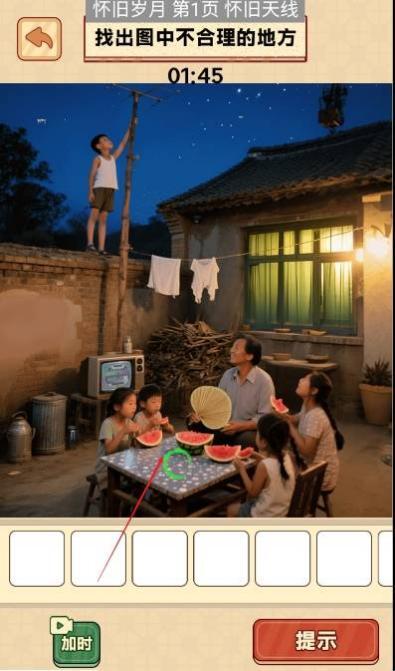 3、进入关卡后,迅速观察画面,找出与所处年代不相符的物品,点击进行标记,要留意时间限制,完成找茬挑战。