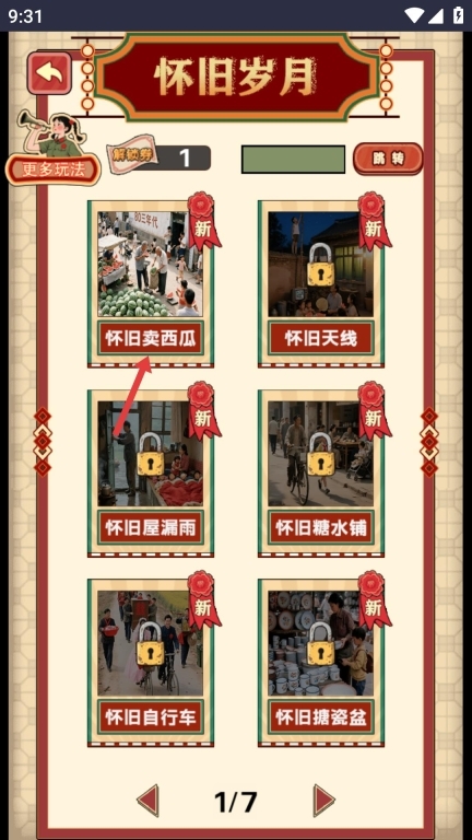 2、在怀旧岁月板块选择怀旧卖西瓜关卡,消耗解锁券即可进入;若解锁券数量不足,可通过完成任务来获取,以此推进怀旧主题的进度。