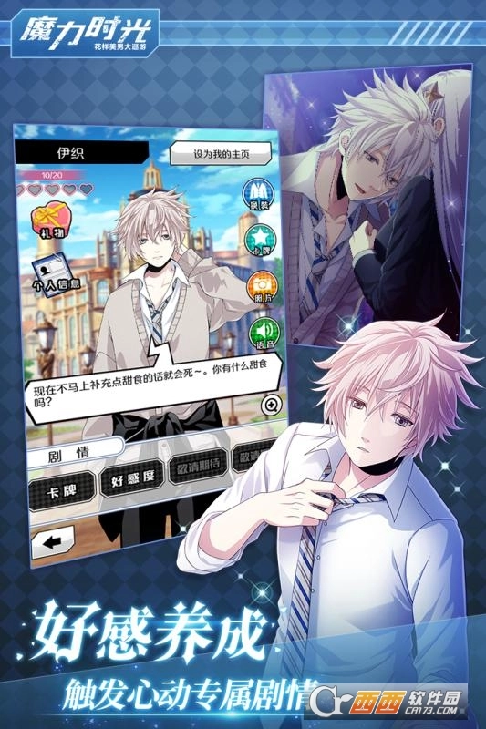 魔力时光正版是一款恋爱养成类手机游戏,魔力时光正版采用日系动漫风格构建唯美次元世界,玩家可选择不同性格的男主进行养成,精致的游戏场景和帅气的人物造型给你浪漫爱情体验,游戏真实模式各式约会场景给玩家无限趣味。