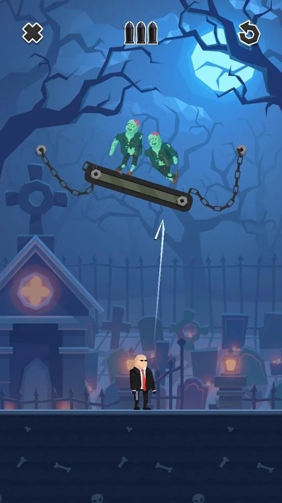 这么多敌人与关卡等你挑战,每个都有其独特的设计!你够聪明吗?能否解开所有谜题?子弹可以弹射、反弹,也能直线发射!利用子弹让物体掉落、爆炸,制造连锁反应,想尽办法达成目标!