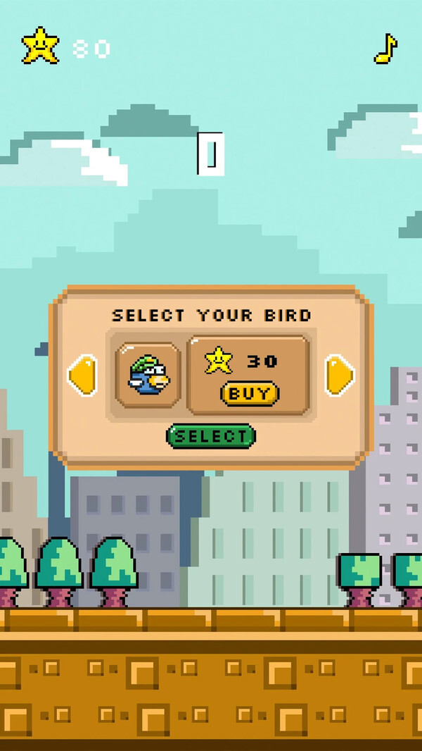 玩家在游戏里控制小像素鸟闯关,关卡中设有大量柱子障碍,玩家需点击屏幕控制小鸟上下移动以躲避障碍,顺利抵达终点。赛道上的星星可多收集些,用来解锁其他像素鸟角色和不同风格的皮肤。