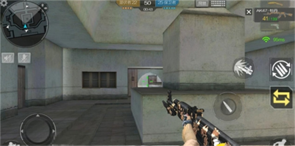 5、进入游戏后,玩家可通过滑动左侧摇杆实现移动操作,右侧的按键功能则分别对应更换武器、射击以及跳跃等。