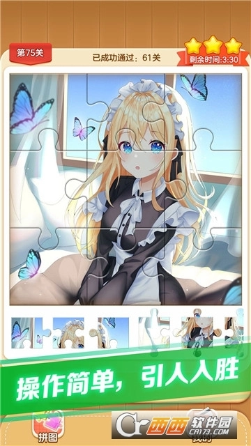1、玩法简单,拥有多种拼图素材可以选择,能够帮助儿童玩家可以随时选择不同的拼图样式,