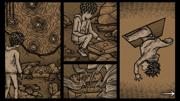 进入游戏后,跟着剧情的推进,持续点击屏幕上的黑暗区域,直至这些区域铺满整个画面。