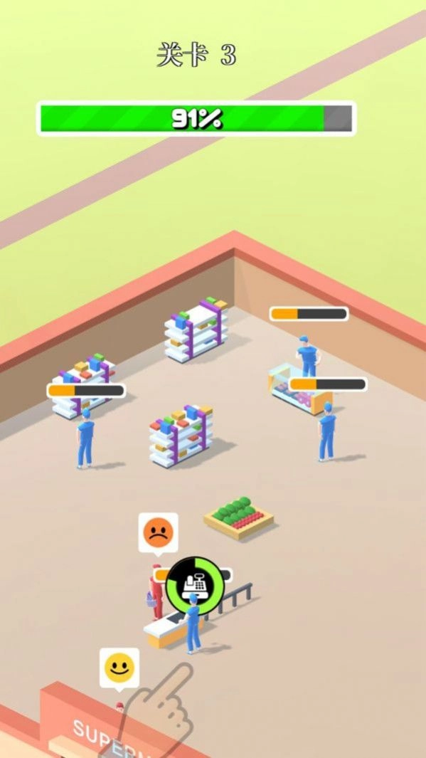 2、极简的操作界面,多样化的系统玩法,全面监控你的超市,完成各种任务。