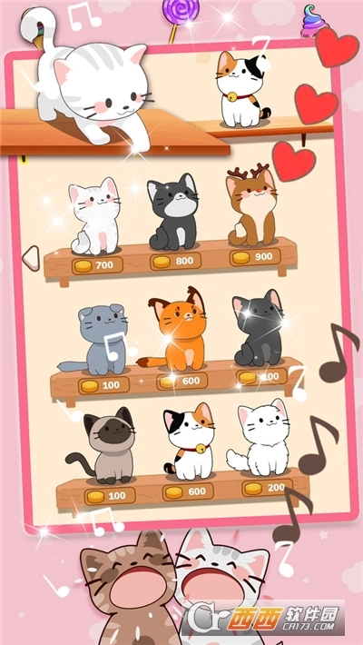 3、游戏中的猫种类繁多。您可以通过玩耍和招募来解锁它们,并选择您喜欢的猫咪进行音乐挑战,让游戏充满乐趣。