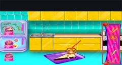 进入厨房场景后,要先收集食材,像界面里的糖之类的原料,按照指引把这些食材拾取起来放进容器中。