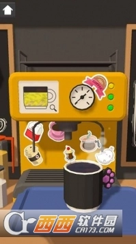 为了赚钱,请在咖啡机上打开独特的贴纸并改善内部装饰。