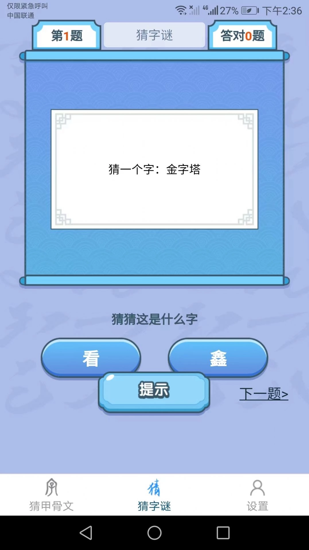 1、尽情来完成你的猜字冒险互动体验,游戏的操作也是十分的放松哦。
