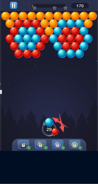 2、点击底部的颜色切换按钮,就能循环挑选不同色彩的气泡,从而灵活调整攻击策略。