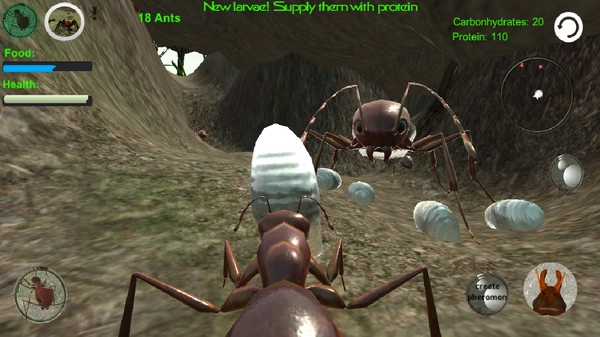 蚁族崛起游戏是一款蚂蚁帝国经营模拟游戏。以微观视角去看待蚂蚁社会的生活与运转,合理分配工蚁与兵蚁的数量,建造自己的巢穴,收集充足的食物,并不断孵育蚂蚁的下一代,当然这个世界还会有很多威胁即将发现,比如突如其来的蜘蛛,它将成为蚂蚁帝国的巨大威胁。