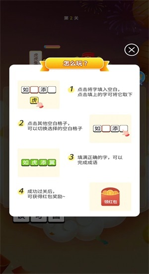 2. 闯关挑战过程十分刺激且令人兴奋,其中包含猜成语、成语接龙以及猜谜语等多种趣味环节。