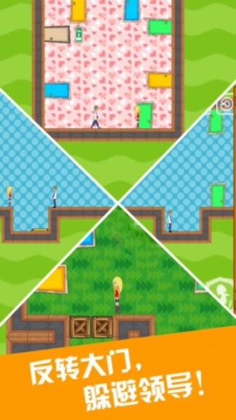 在游戏里,玩家得帮安娜找到正确的门,让她能顺利从办公室溜出去。不过要当心那些来回巡视的办公室经理哦,翘班的时候撞上他们可没好果子吃。