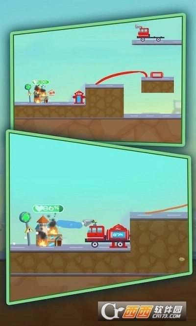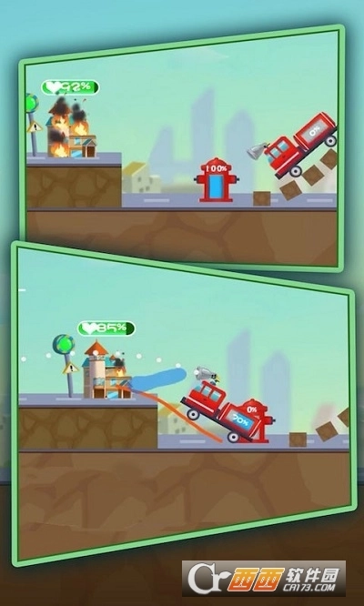 2.在丰富多样的救援任务中灵活应对不同的火情,完成任务,赢取奖励,升级消防车;