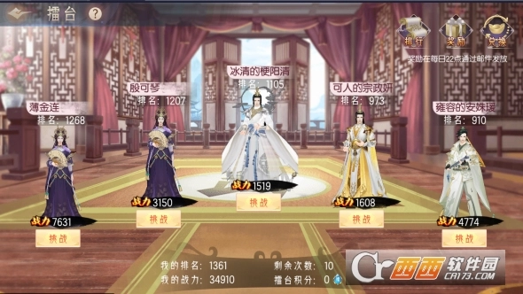 小主等级达到24级,即可开启擂台功能,宫闱之争,讲究的就是位份,擂台排名越高,每日擂台奖励就越丰厚。