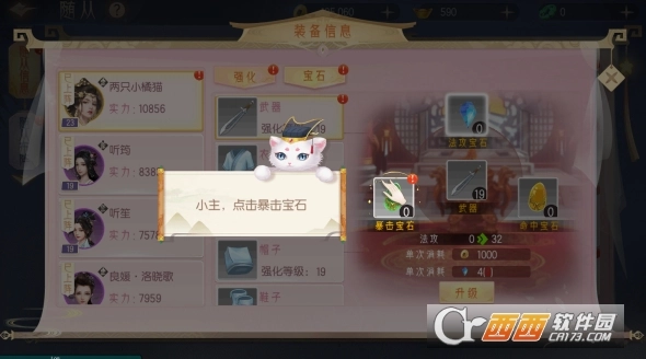 小主等级达到23级,宝石强化功能开启,给装备镶嵌上宝石以后,能够大幅增加装备属性。
