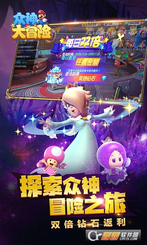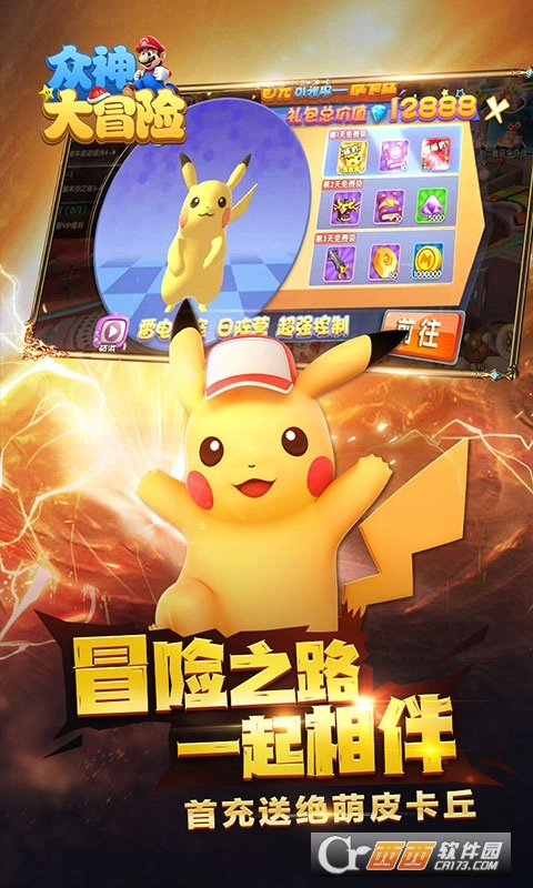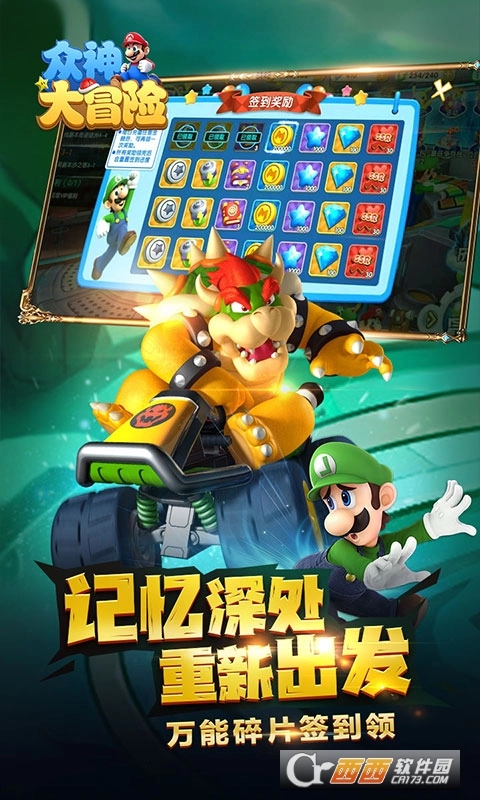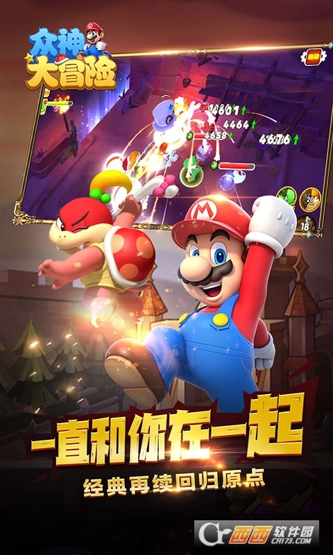 记忆深处重新出发,年度梦幻新游《众神大冒险(神作大乱斗)》探索众神冒险之旅,登录送SSR伙伴,首充送绝萌皮卡丘,经典再续回归原点,这是建立在马里奥世界观上,全新衍生的一款对战类ARPG游戏。游戏中,你将成为主角马里奥,同时,还有路易基、碧琪公主等经典角色任你解锁,长期和马里奥处于敌对状态的库巴及其手下也有机会成为你冒险路上的伙伴。游戏里不仅集合了剧情沉浸式的副本探险,独创的无尽探险爬塔游戏模式,紧张刺激的PVP对决系统,更有兔子军团、精灵禁地、游戏小屋等众多新奇玩法。3D高清次时代体验,和马里奥、凯皮一起踏上解救碧琪公主的冒险征程吧!