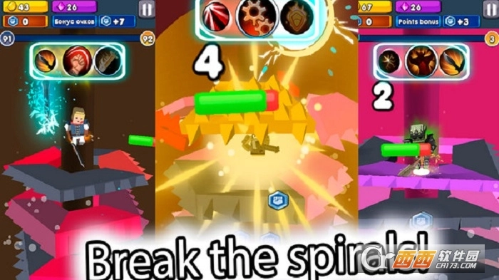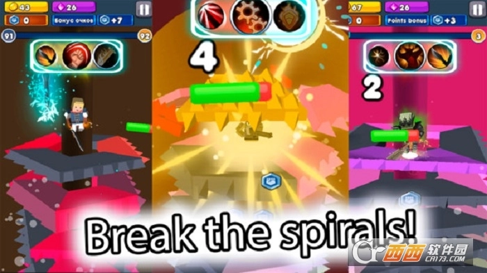 丰富的武器道具辅助你展开精彩的挑战,螺旋随时都会旋转爆炸,带给你致命的威胁。
