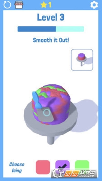 蛋糕糖衣大师是一款休闲益智小游戏,玩家在游戏中可以为各种蛋糕制作糖衣,通过模型让你的蛋糕转动起来,添加各种装饰让它更加好看,完成关卡任务就能通关,精心准备的海量关卡等待玩家挑战。