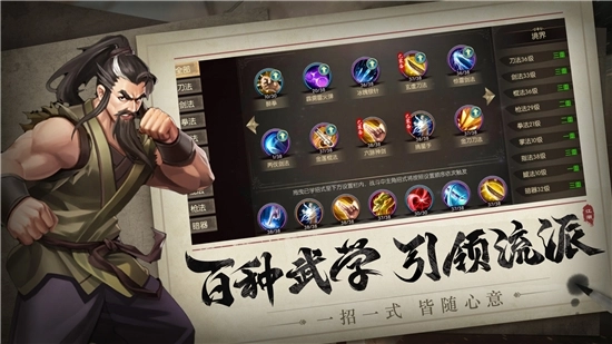 各派门派绝学武功,心法内功全部拿下!独门心法,自由搭配、随意组合!再同绝世武功招式搭配,能组合出近百种战斗套路!可助大侠称霸武林,笑傲江湖!